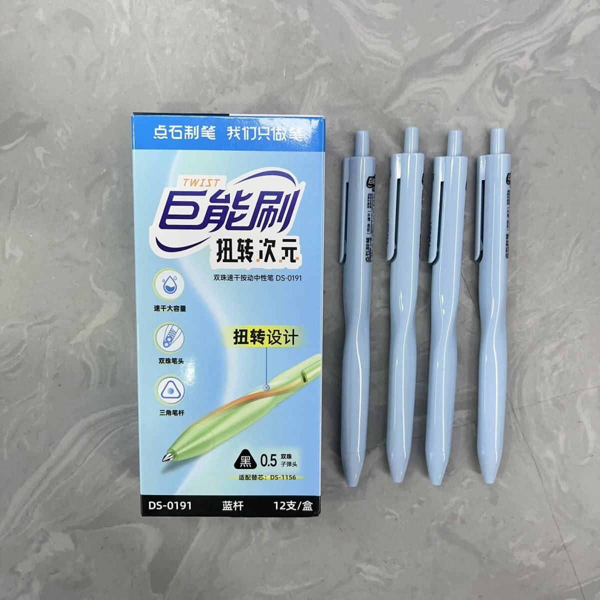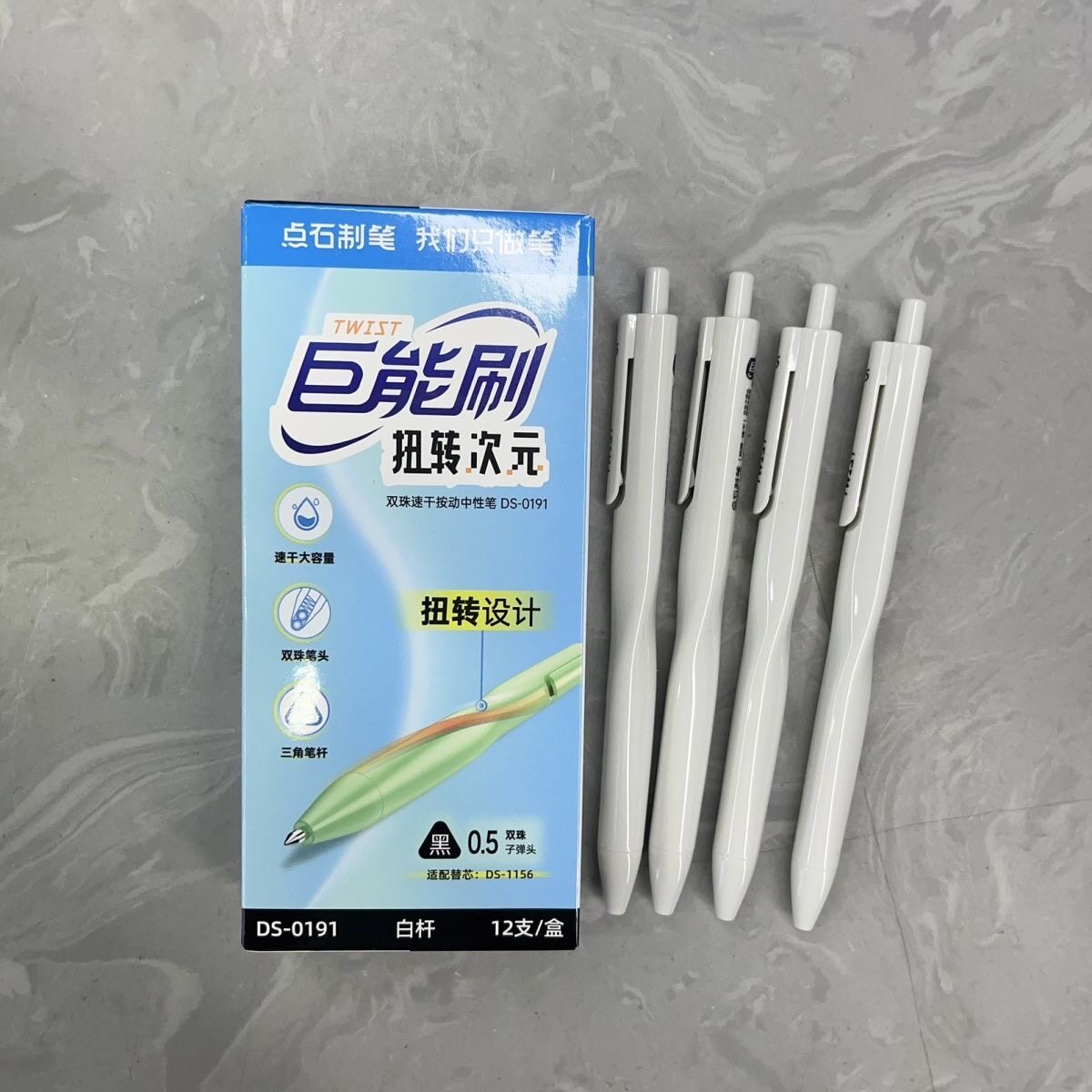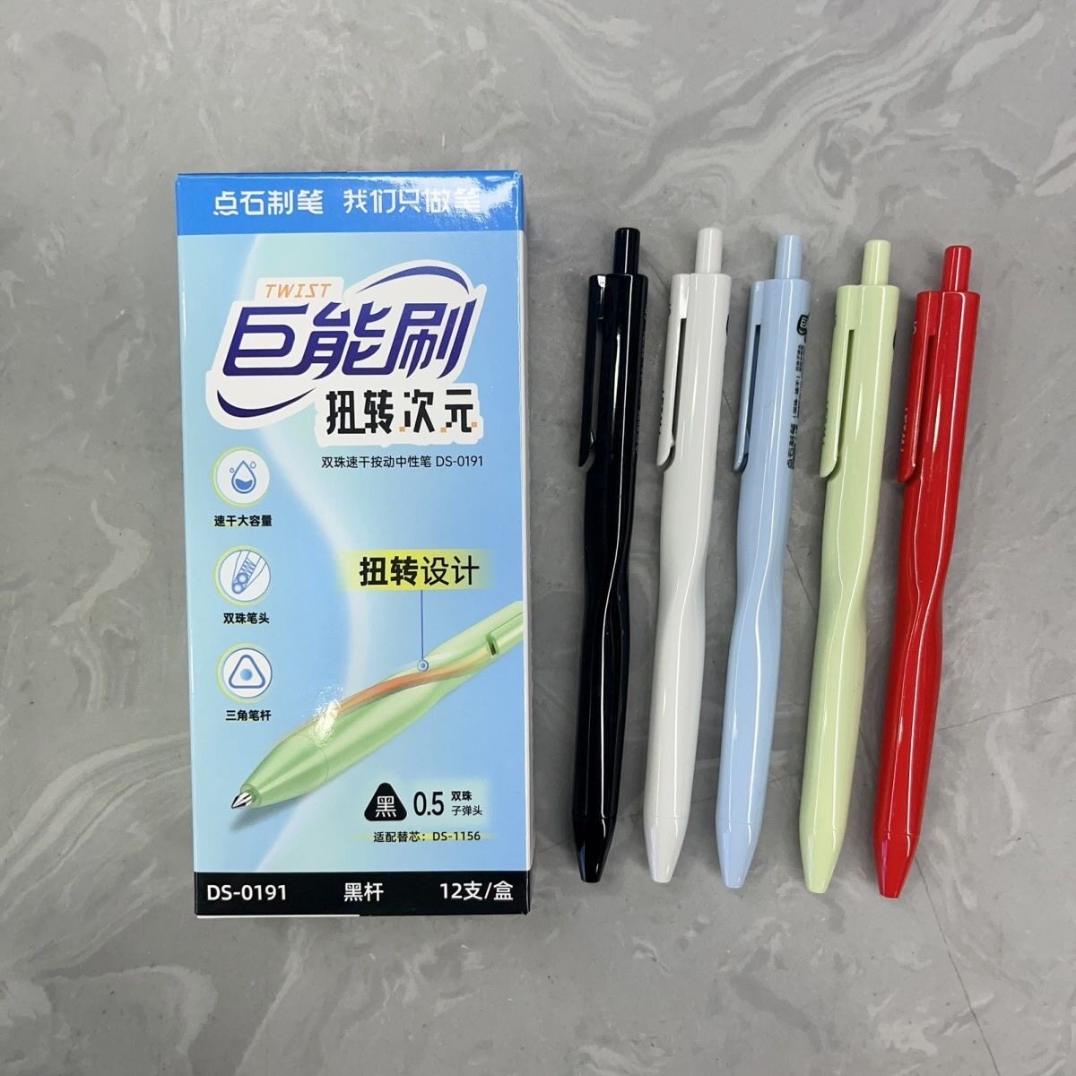 点石DS-0191巨能刷扭转次元双珠速干按动中性笔