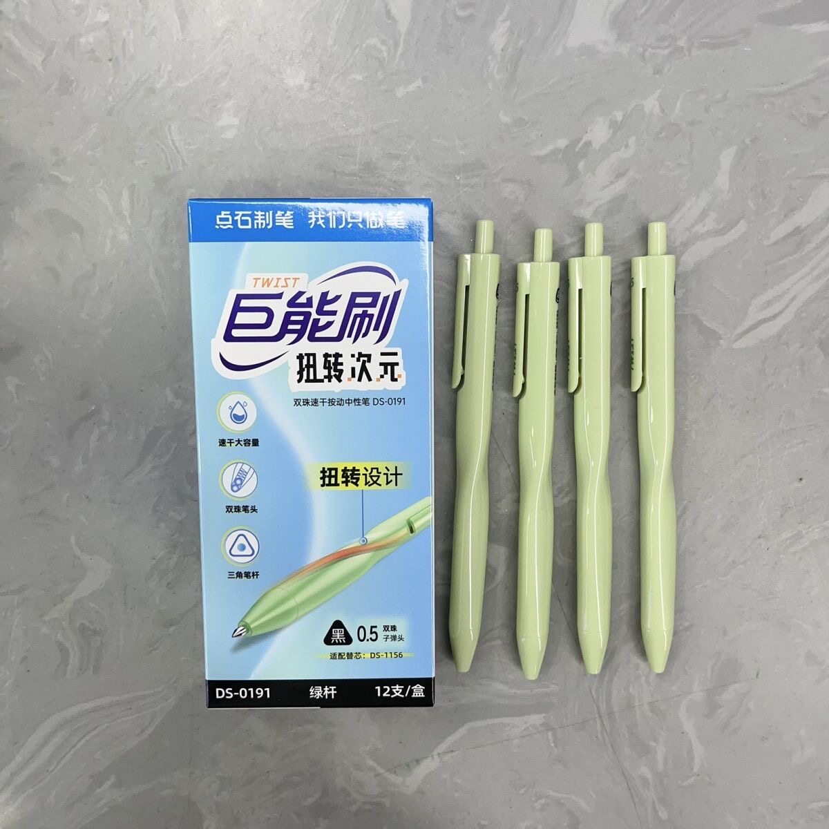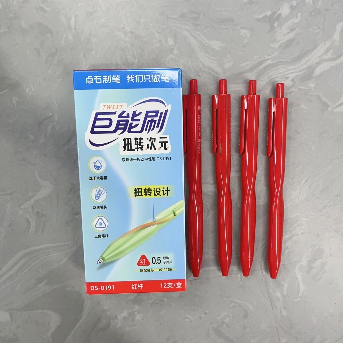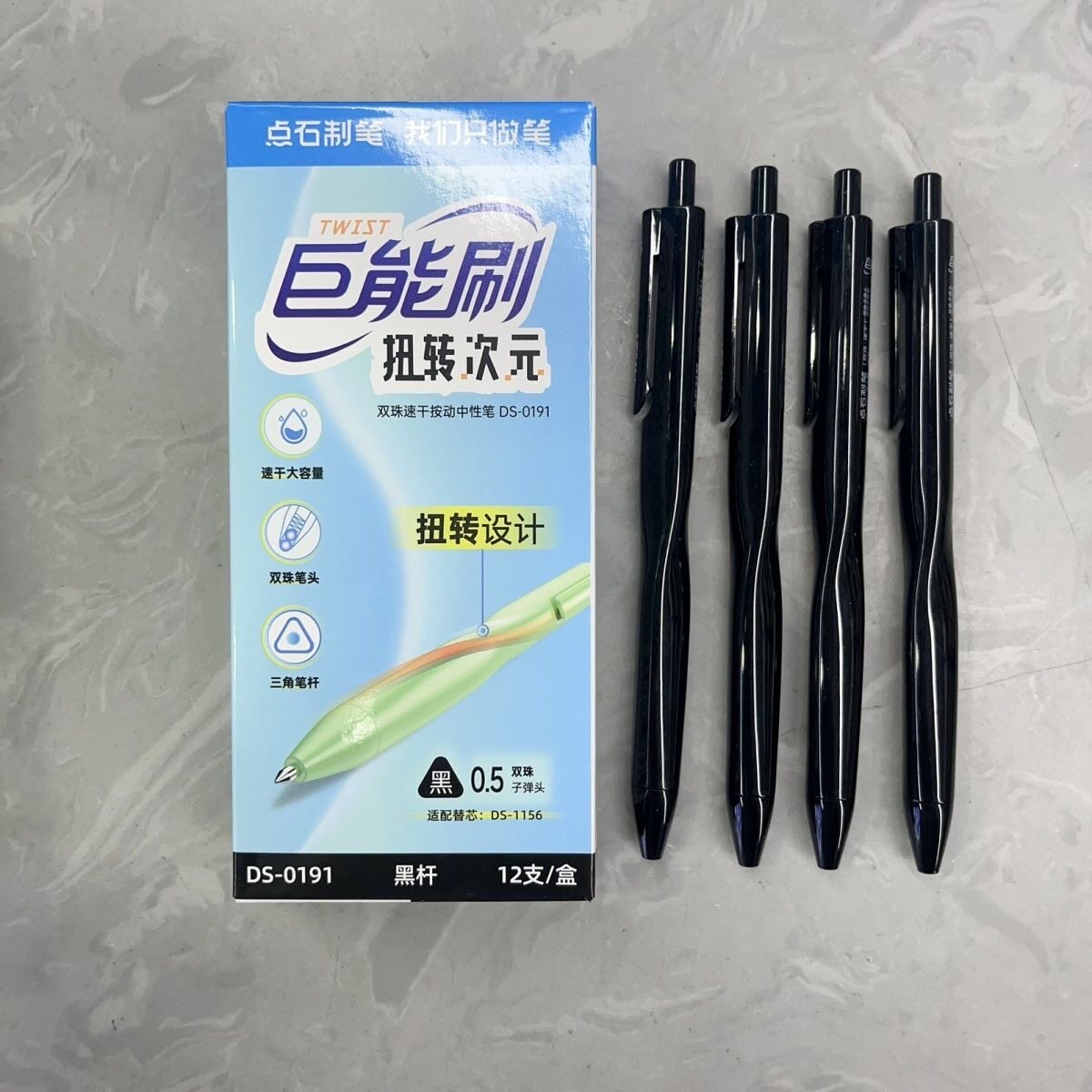 点石DS-0191巨能刷扭转次元双珠速干按动中性笔