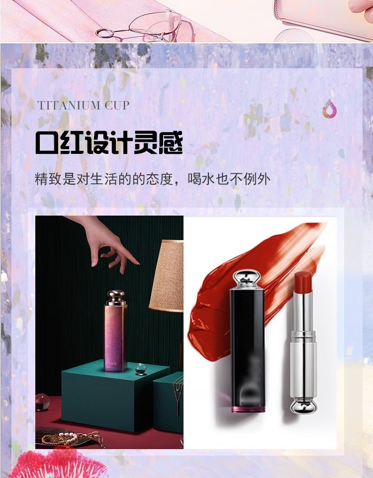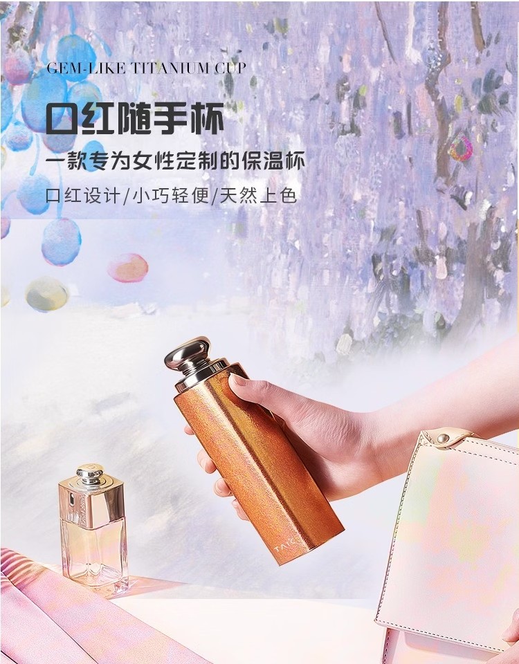 太可(5色)纯钛口红杯140ml TKHB-T140炫彩红