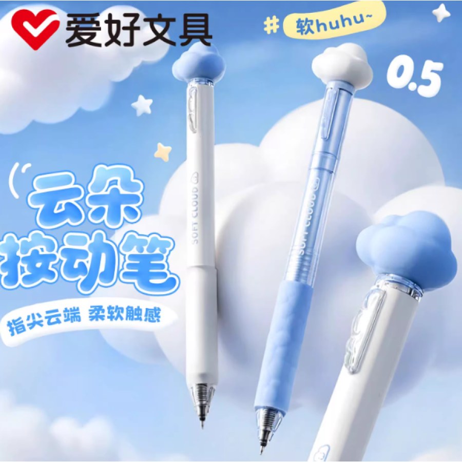 爱好云朵按动中性笔ST笔尖0.5mm刷题笔速干顺滑不易断墨黑色笔细尖锥中性笔初中生专用按压式高颜值GP40913支
