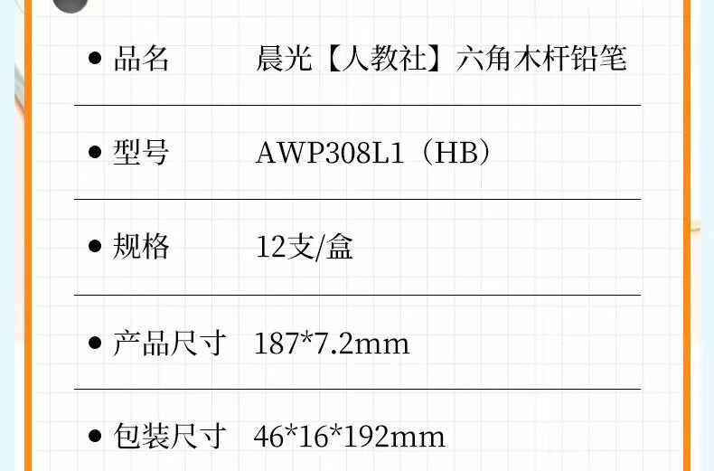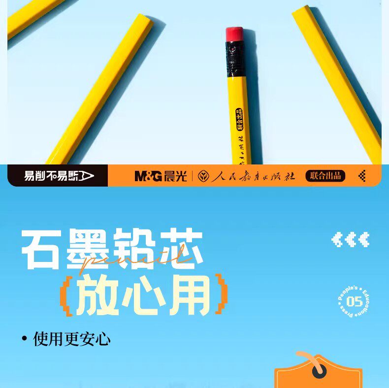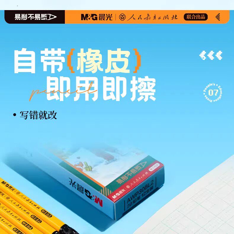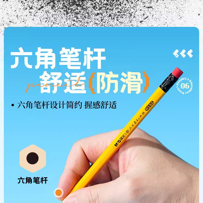 晨光木杆铅人教社HB六角12支橡皮头AWP308L1