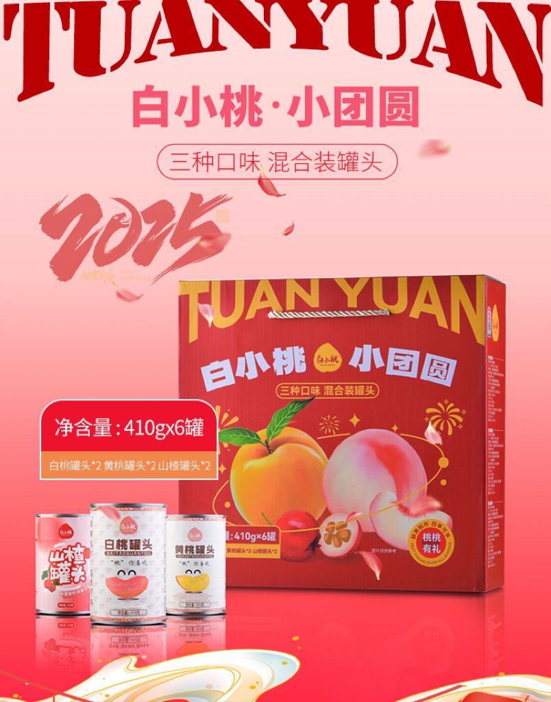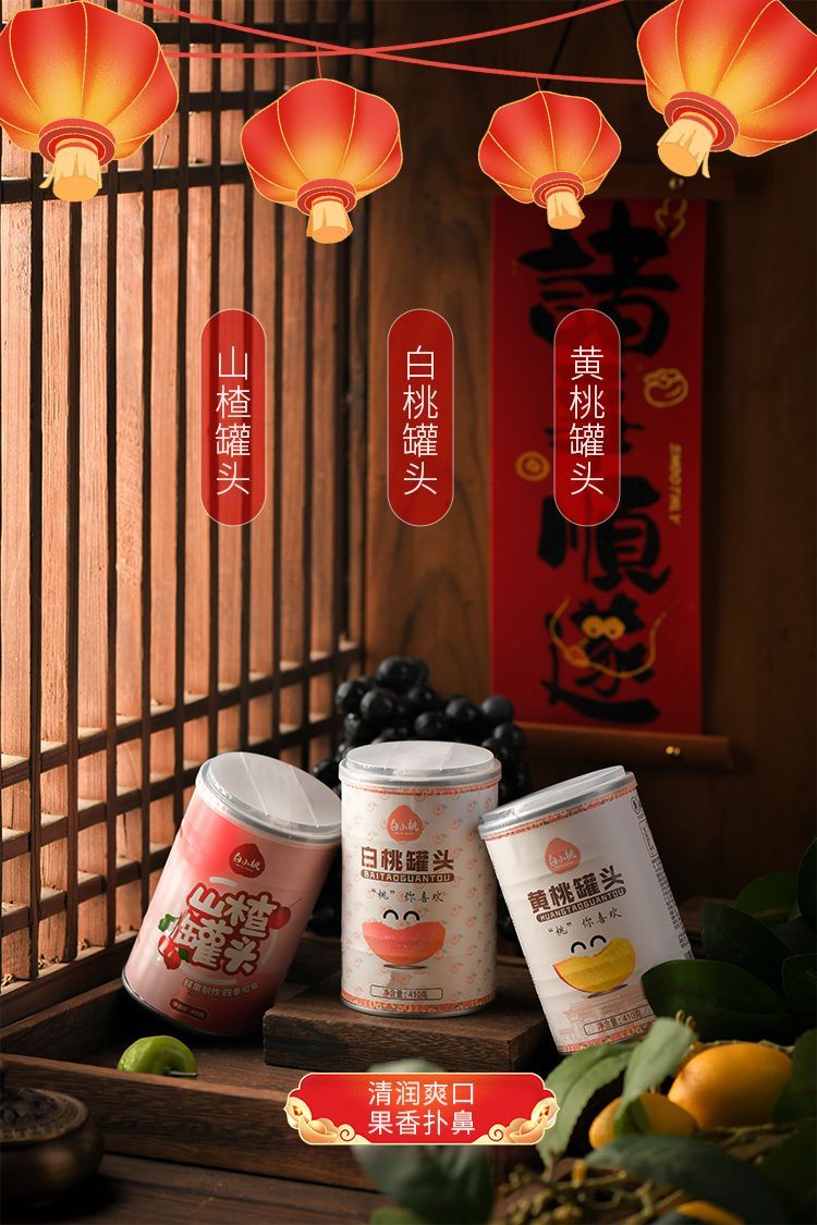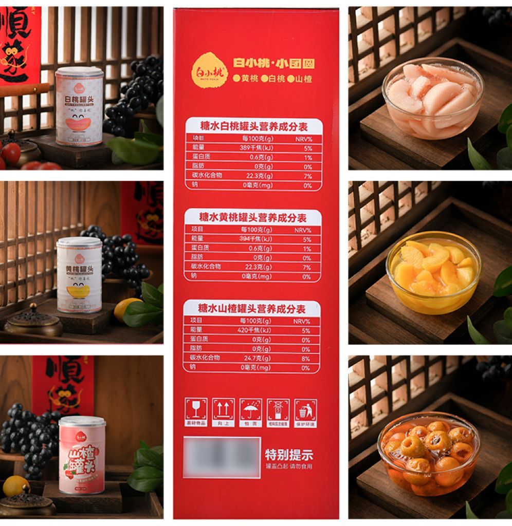 白小桃小团圆山楂白桃黄桃混合装罐头