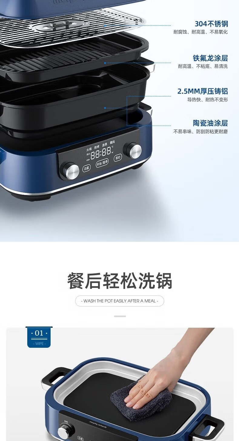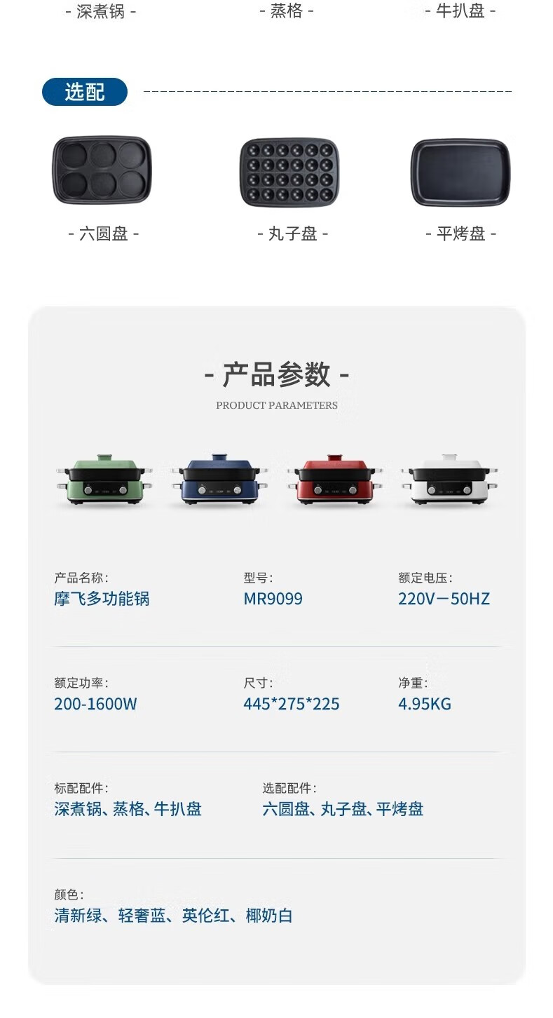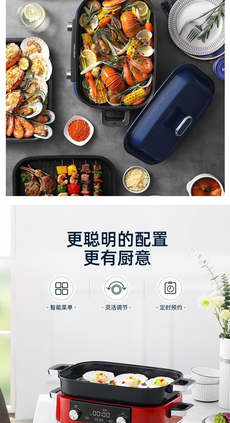 摩飞电器(Morphyrichards)二代多功能锅 家用电火锅电煮锅电蒸锅火锅锅5升大容量分体式预约蒸煮一体不沾煎烤料理锅MR9099标配