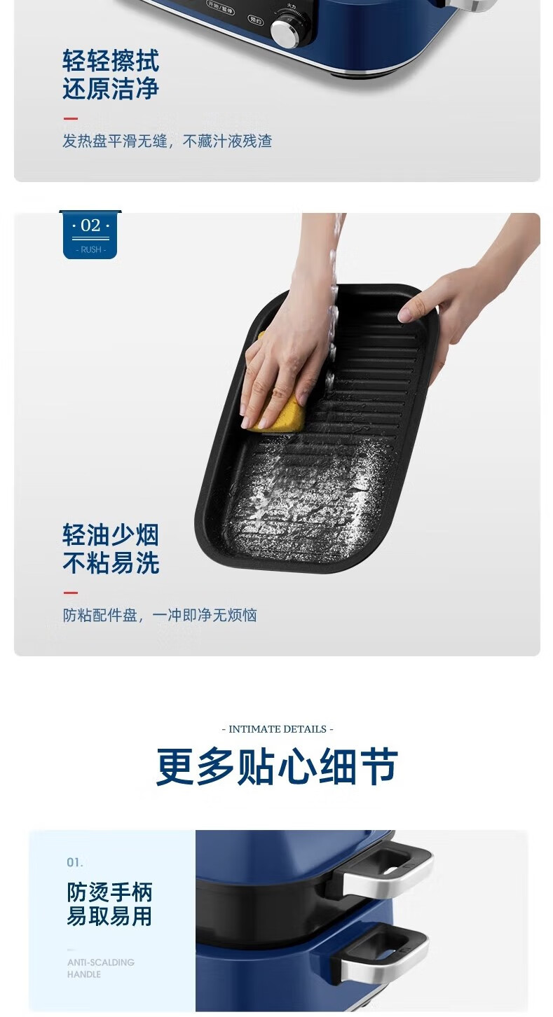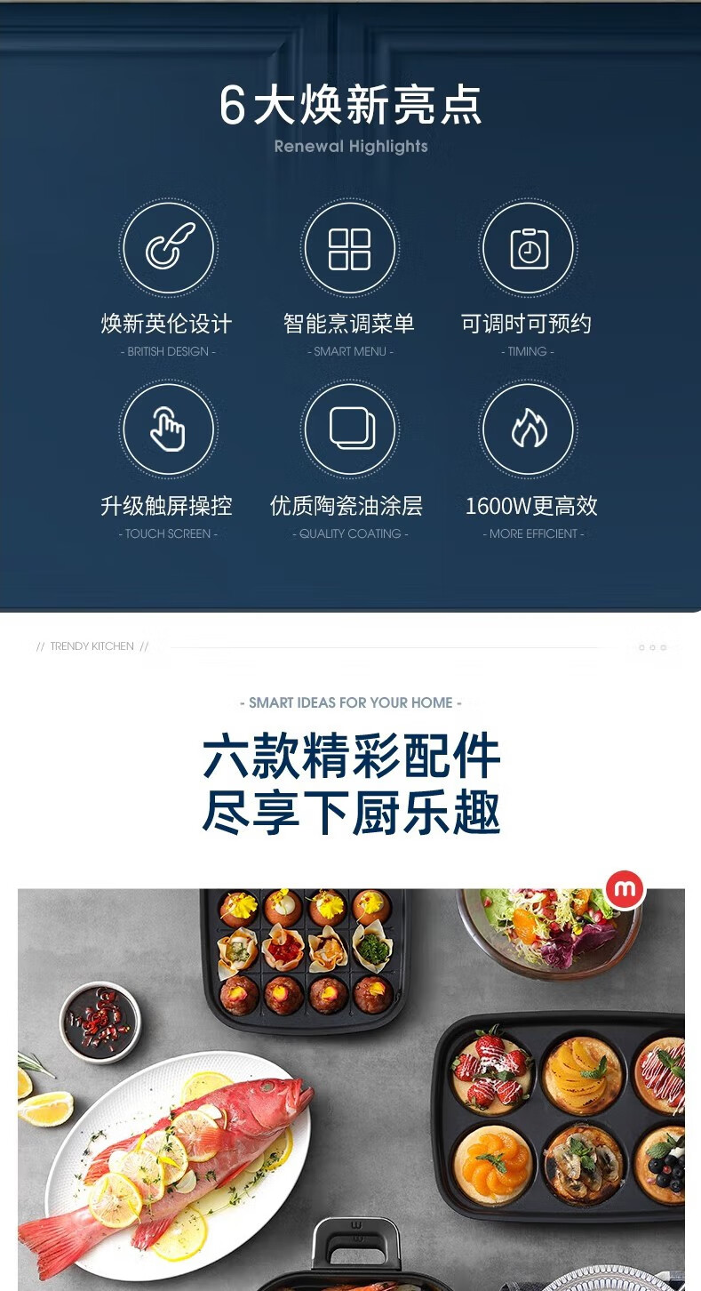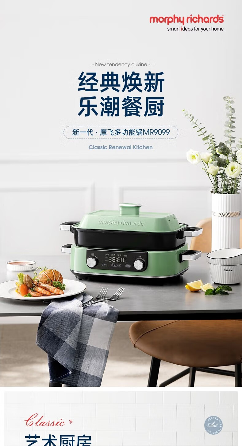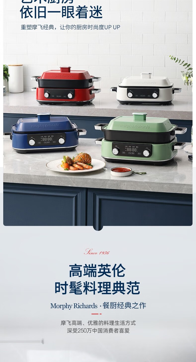 摩飞电器(Morphyrichards)二代多功能锅 家用电火锅电煮锅电蒸锅火锅锅5升大容量分体式预约蒸煮一体不沾煎烤料理锅MR9099标配