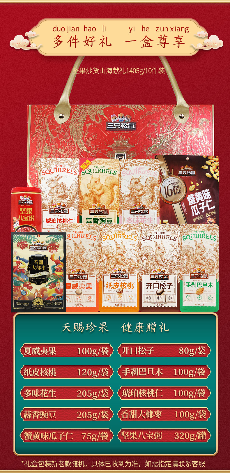 三只松鼠年货新款山海献礼礼盒1405g/10袋