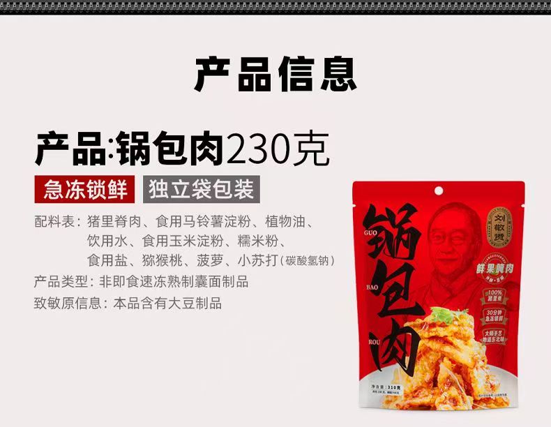 【送2袋酱汁】刘敬贤锅包肉310g*2袋