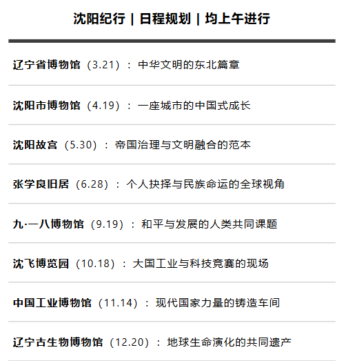 场次适用:可用于本机构所有沈阳半日文史主题活动(故宫、张学良旧居、博物馆等),以当期排期为准。