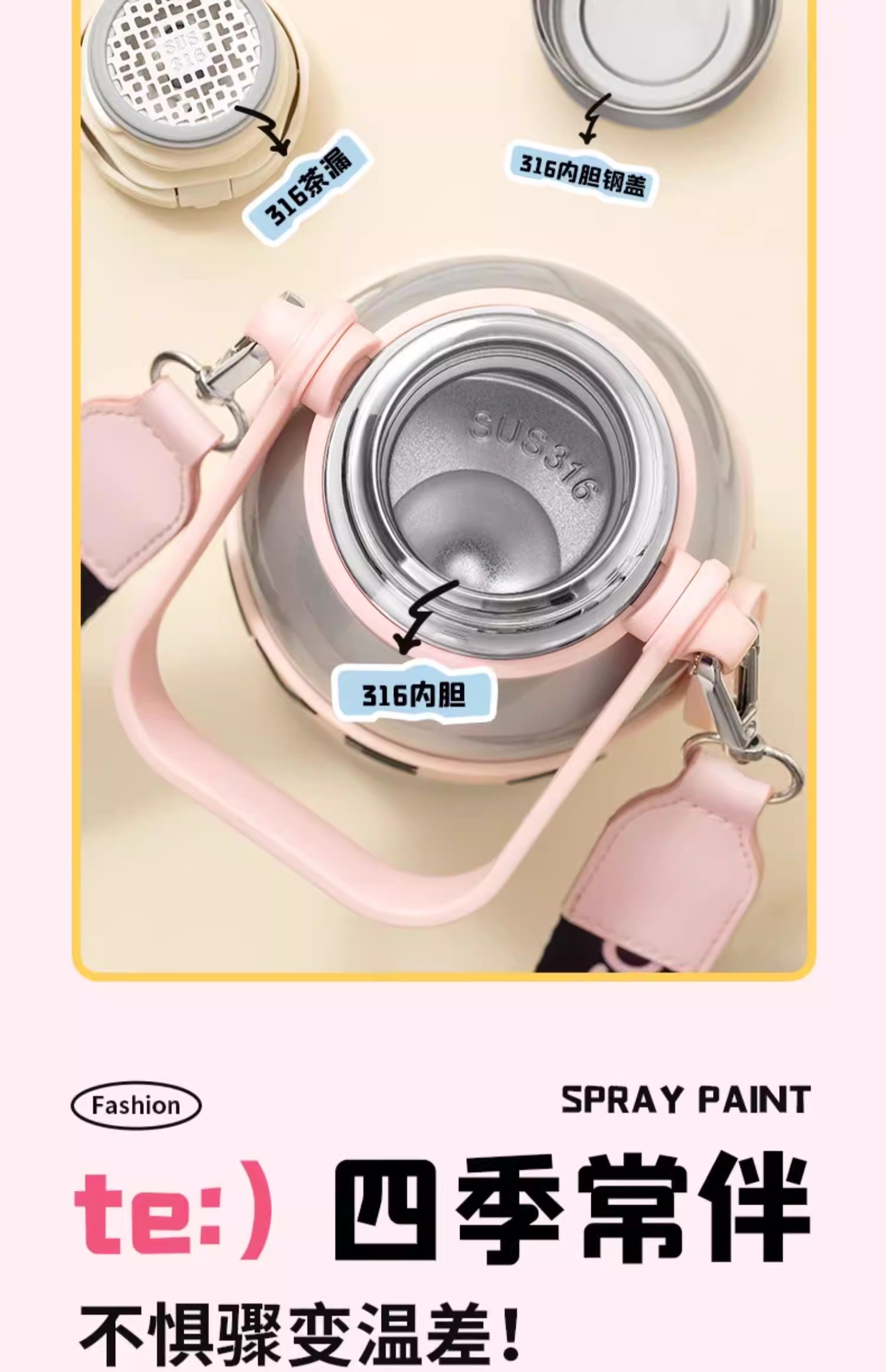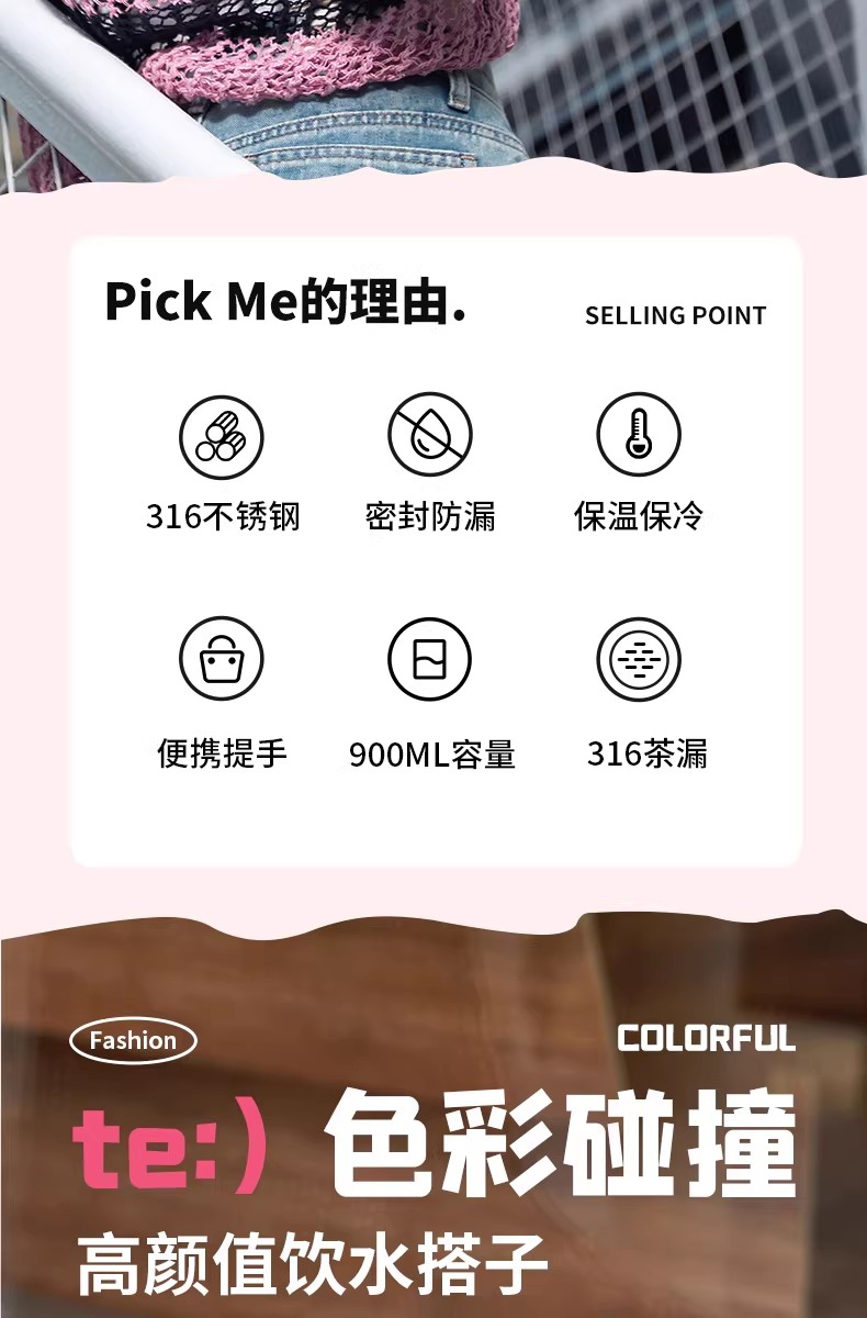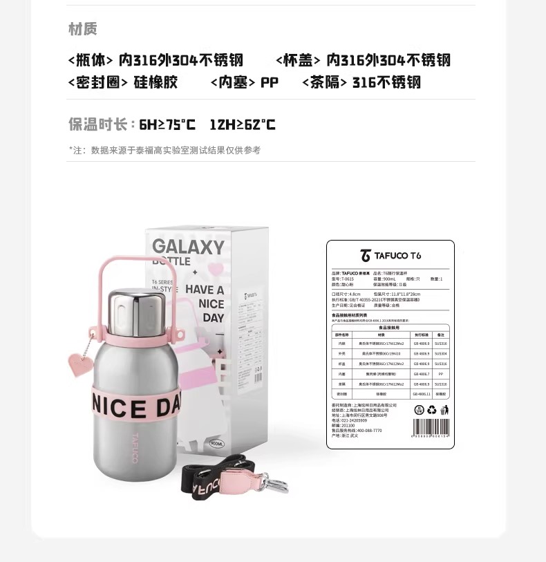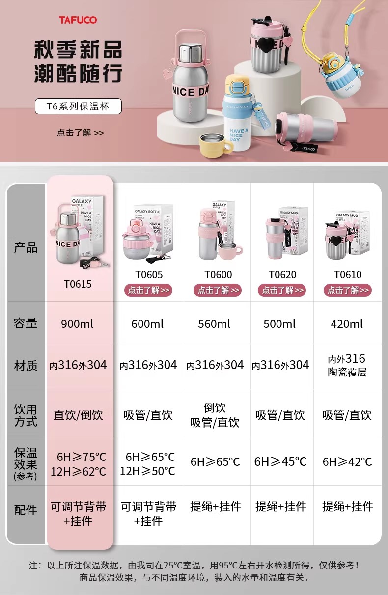 泰福高 T6随行保温杯 T-0615 甜心粉 0.9L/18