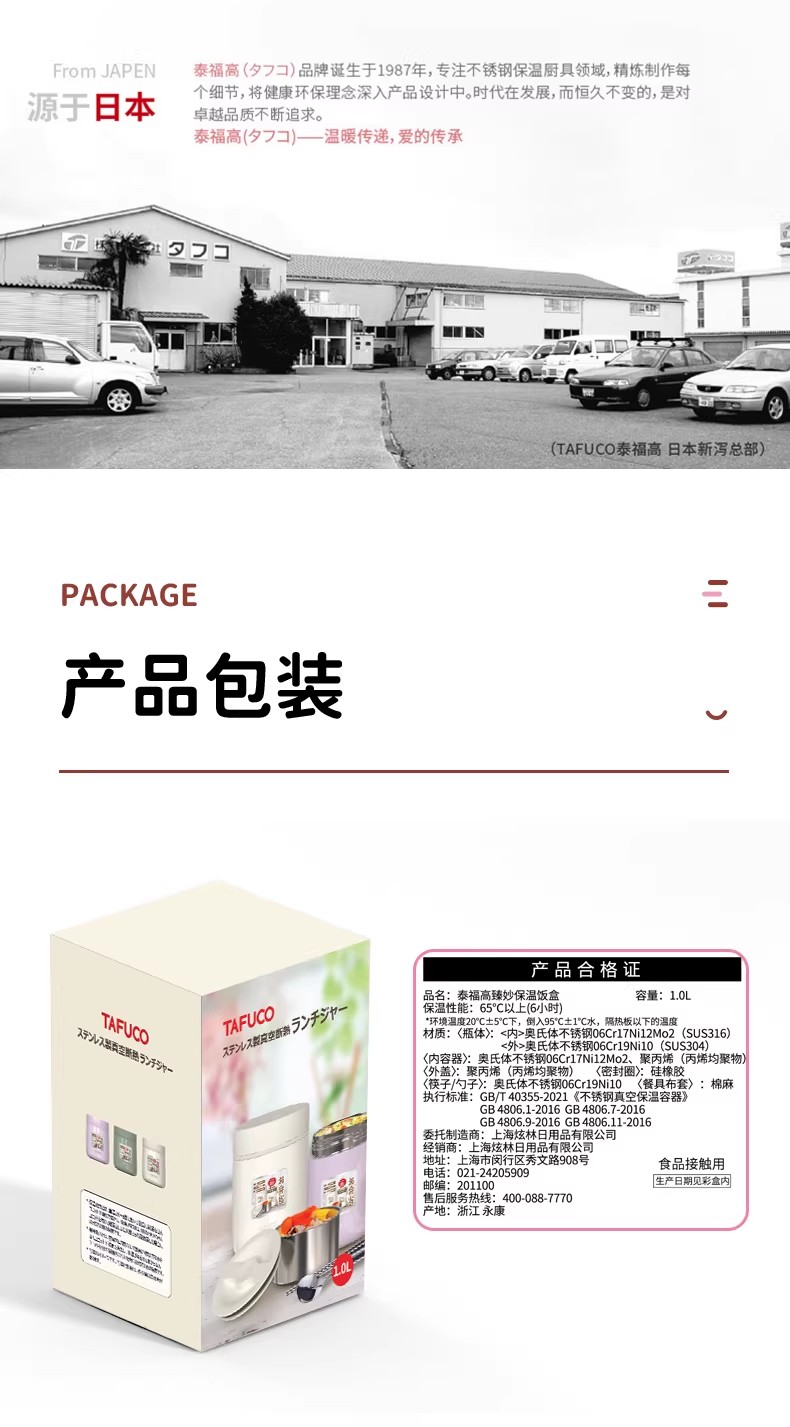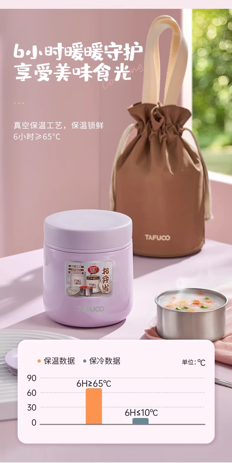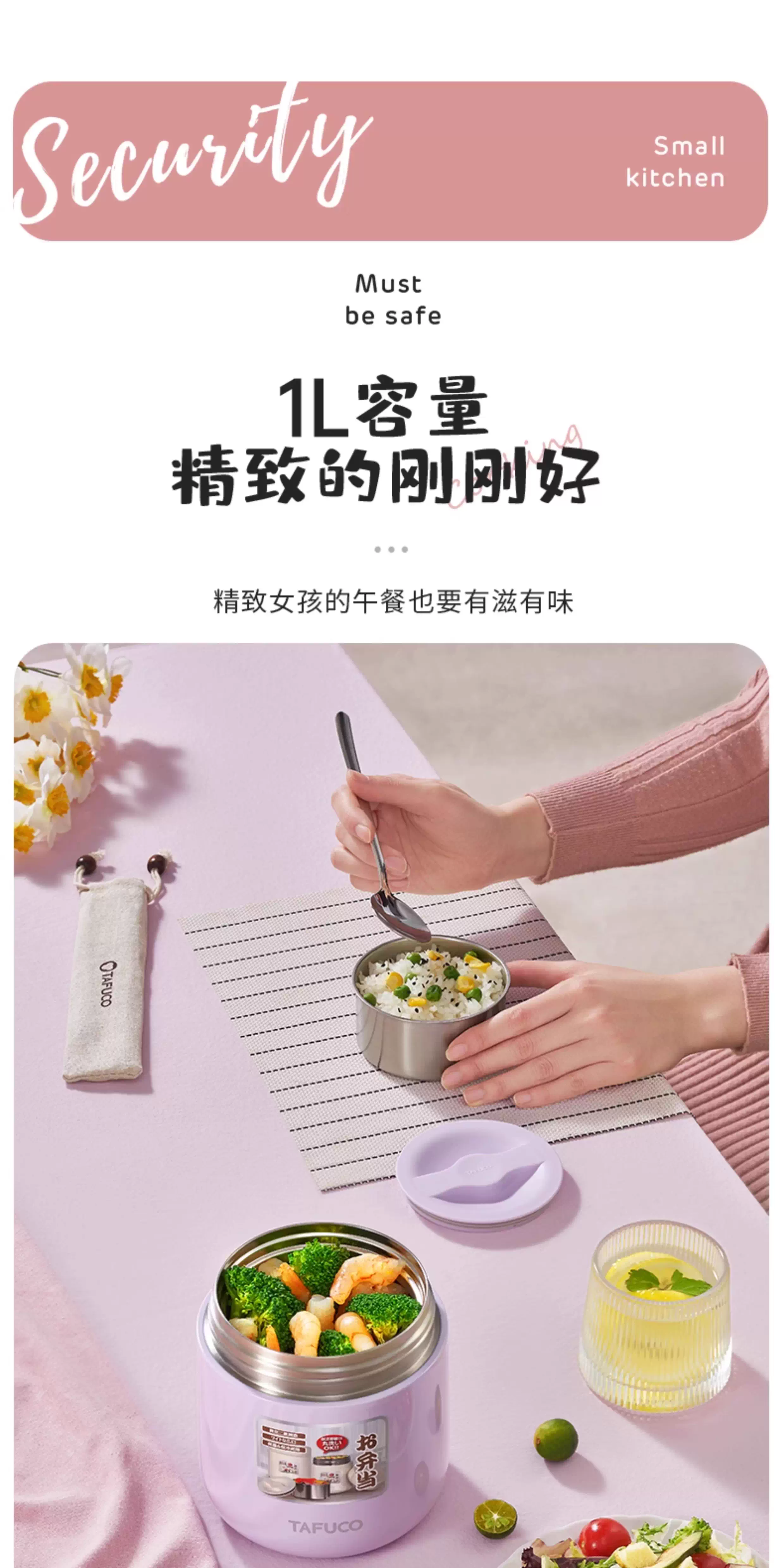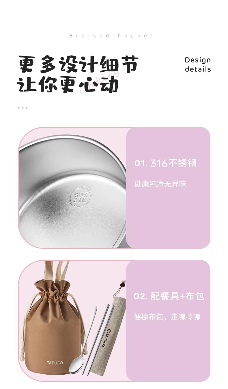 泰福高 臻妙保温饭盒1.0L T-0272 杏色 1.0L/12