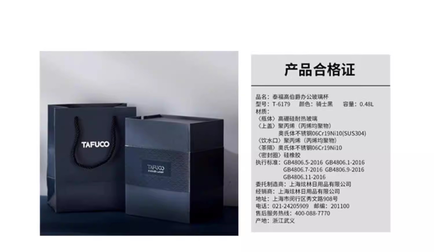 泰福高 伯爵办公玻璃杯 T-6179 黑色 480ml/6