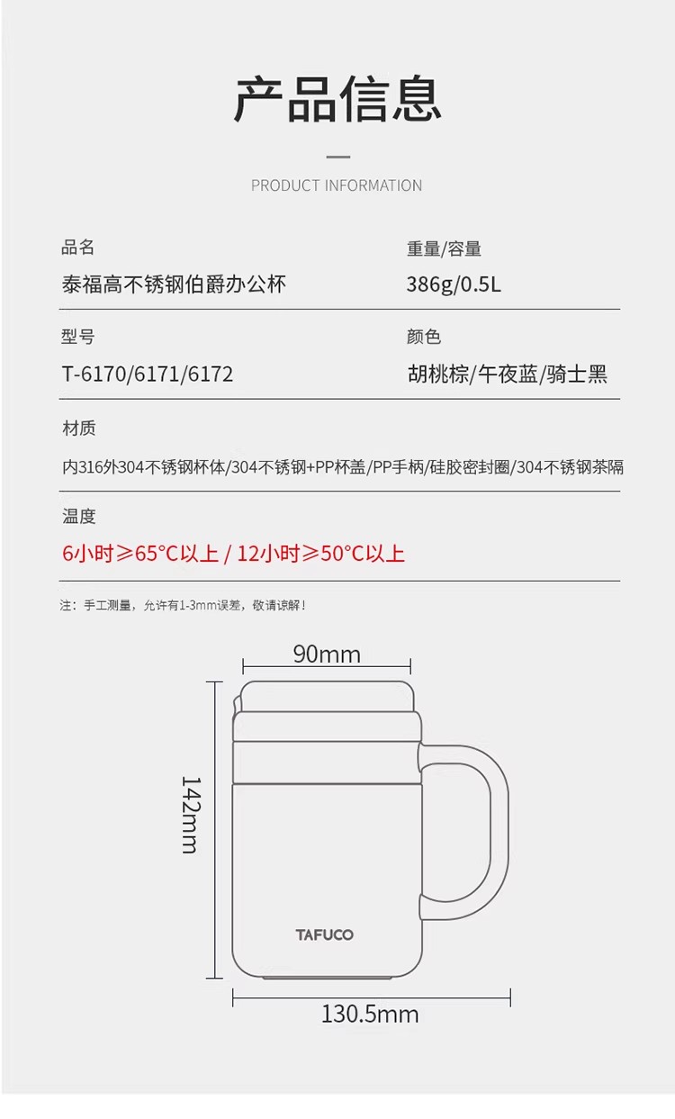 泰福高 伯爵办公杯 T-6176 蓝 650ML/12