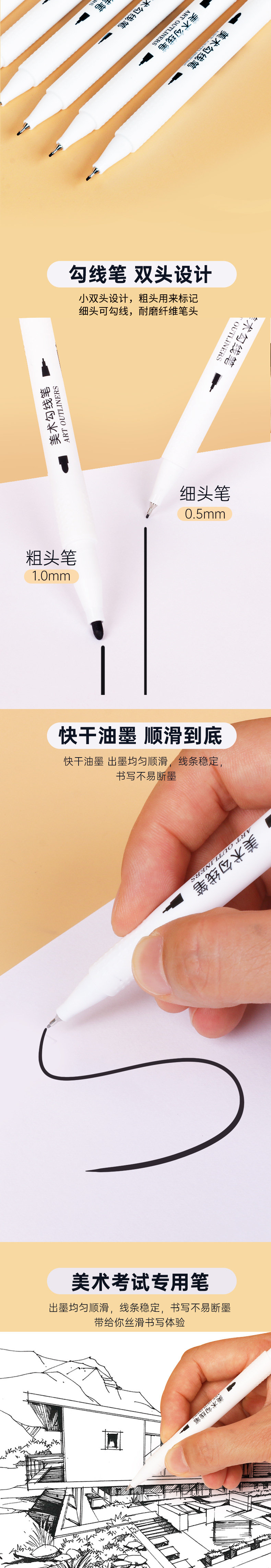 双头勾线笔【黑色6支】