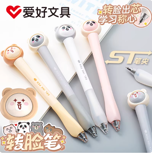 转脸笔 转动小情绪,Q萌温暖配色,转动笔头出芯,四种表情可选,三角矫姿笔握,顺滑ST笔尖。