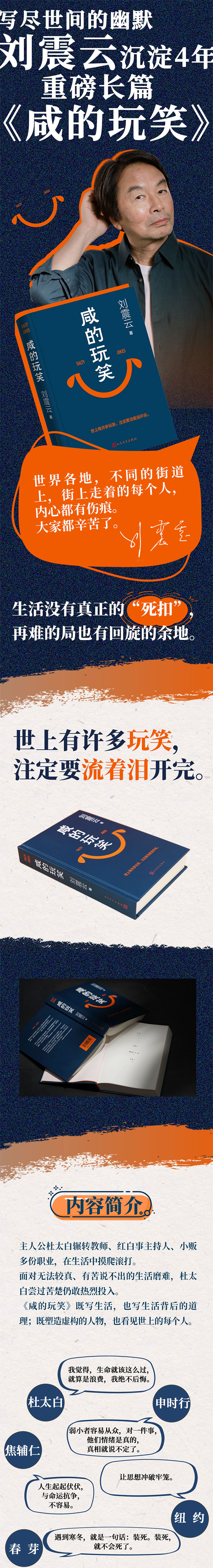《咸的玩笑》既写生活,也写生活的道理;既塑造虚构的人物,也看见世上的每个人。 世上许多玩笑,注定要流着泪把它开完。