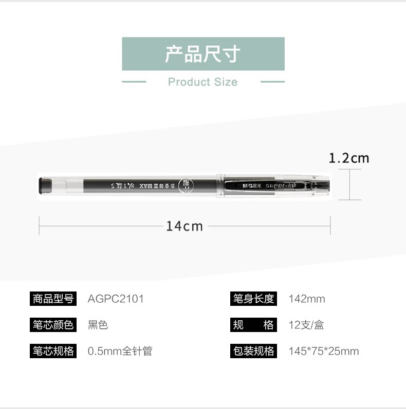 黑色12支;书写粗细:0.5mm