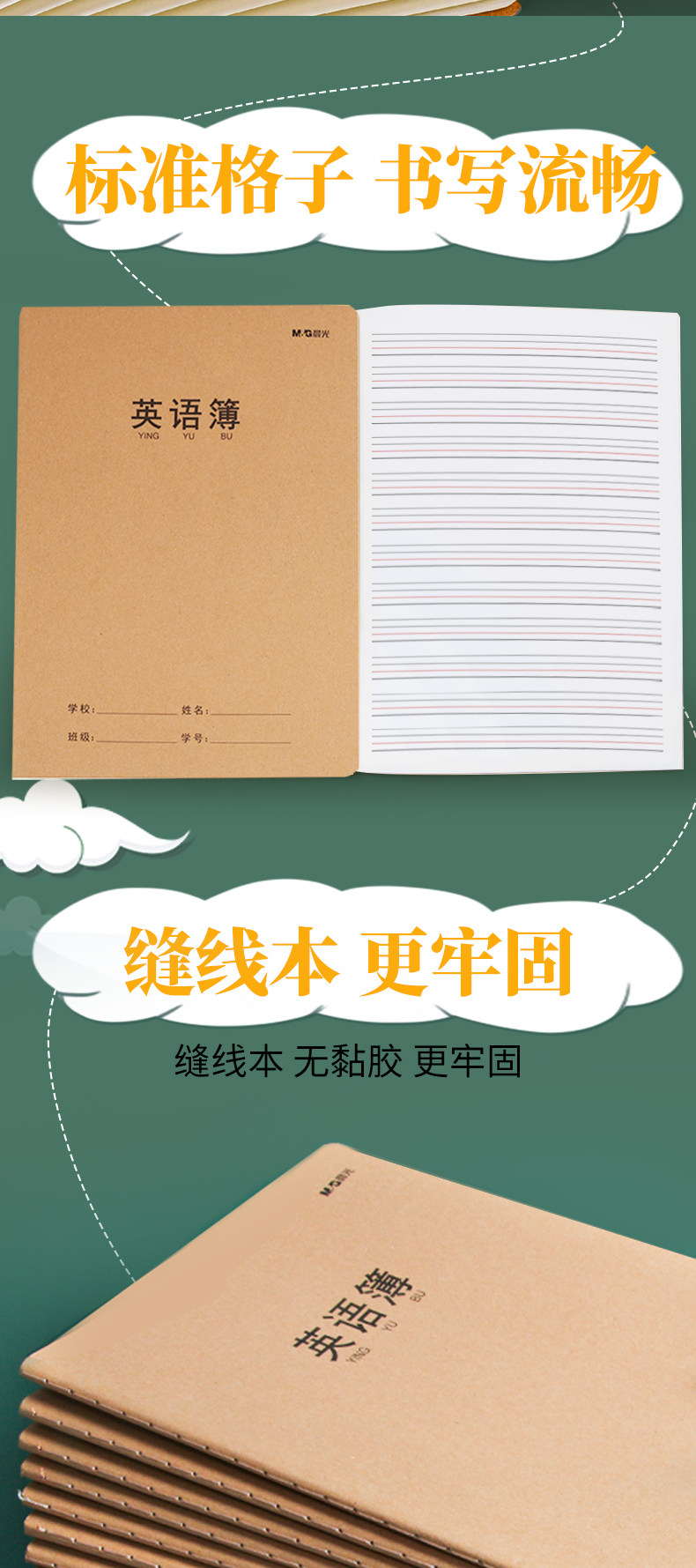 B晨光1630英语缝线本30页(牛皮纸360)