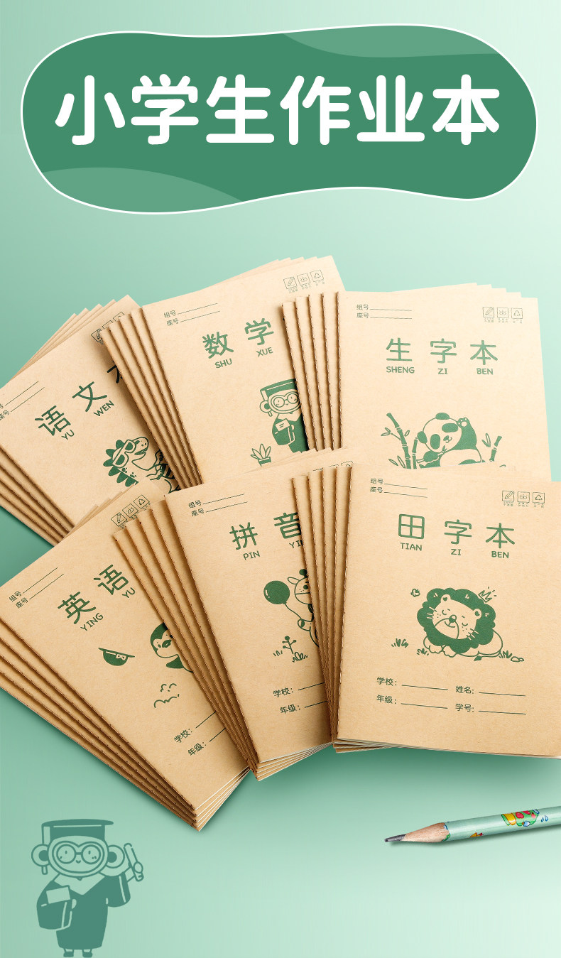 【共50本】语文+数学+田字+拼音+生字(每款10本)
