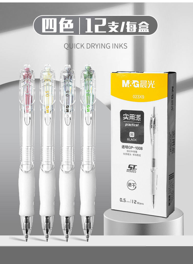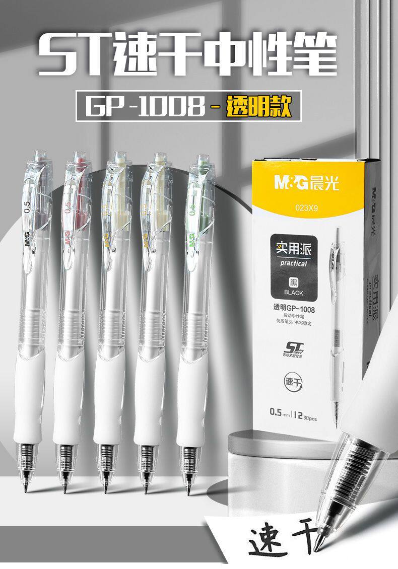 12支笔【盒装全款】+10支晨光笔芯(G5系列按动款ST笔尖);书写粗细:0.5mm;