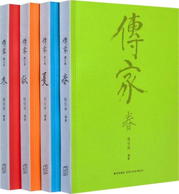 《传家:中国人的生活智慧》被称为“美的百科全书”,中国传统文化和生活艺术的集大成者。事实上姚任祥女士创作这套书的动机,只是为了“传家”——向自己的三个孩子传递中国人的文化基因。很多读者第一次知道《传家》,多是通过湖南卫视的《天天向上》栏目。2011年4月底,姚任祥女士在《天天向上》演播室向观众介绍“精美如斯”的这套书。主持人汪涵说,任祥女士写了二十七万字,上山下海拍了十多万张照片,最后集结成了这套传承中国文化的百科全书,将妈妈的唠叨落实在文字上。南怀瑾大师不仅为这套书写了序,题了书名,还专门刻了一方印“愿天常生好人,愿人常做好事”,实属难得。这套定价两万台币的书在台湾出版,也是为了给圣严法师筹建中的法鼓大学募款,到2012年8月,台版《传家》总共募得新台币七千二百万元,在不扣除成本的情况下全数捐出。2012年母亲节,《传家:中国人的生活智慧》简体中文版由新星出版社推出,广受好评。姚任祥女士为普及“传家”善念,主动放弃全部版税所得,以求降低定价,惠及更多读者。这套制作精美的图书被读者称为“传家·宝”,屡屡加印,销量已达十三万套。几乎是在第一版刚出版上市,姚任祥女士就开始了再版的资料整理工作。2014年,精心修订、增加了诸多新鲜内容的《传家》增订版在台湾出版,又经传家编辑团队努力,2015年初夏,《传家:中国人的生活智慧》增订版也在大陆面世。在此期间,姚任祥女士在北京、上海、南京、广州及美国、英国等地举办了多场读者分享会,与全世界读者面对面分享交流中国传统文化的传承。有读者带着即将出国留学的女儿来参加活动,留书道:“姚任祥讲出了我想说不知从何说,不知从哪说,不知怎么说的所有。我的不放心都寄托到行囊里的书了。”《传家:中国人的生活智慧》前后历时七年,后两年为了新的增订版本,动员的人力物力并不亚于第一个版本。全书分春、夏、秋、冬四卷呈现中国人的生活智慧,每本内容都以“气氛生活”、“岁时节庆”、“以食为天”、 “匠心手艺”、“齐家心语”、“生活札记”六个单元,用文字、图像与生活结合的方式展现日常生活的中国文化精粹。“气氛生活”是运用每个季节不同的光影来赞美这个季节;“岁时节庆”介绍中国人的传统节日,介绍庆典的由来、怎么吃、怎么玩等等;“以食为天”是全书所占分量最重,分主食、文化食物和零食三个单元来介绍,包括了米、面、蔬菜、肉类的制作手法,以及茶、酒的分类等等;“匠心手艺”部分则着眼于生活四周任何跟生活有关的手艺,以现代的手法介绍传统艺术的特质,如插花、女红、服饰等等;“齐家心语”以动情的文字挖掘家族秘密,再现中国人的历史悲情,并与家庭成员分享生活哲学、相处之道与爱意传达;同时搜集整理了中国人的诗词、成语谚语、戏曲列表、格言妙语等,很有实用价值。“生活札记”部分主要介绍现在的生活,包括了种菜买菜、饮食、家计等。《传家》巨著以创新的手法整理了我们的文化资产,以诚恳的心意宣扬家庭价值与环保养生,描绘了一张崭新的生活地图送给中华儿女,亦是一位中国母亲送给儿女的宜其室家的“锁麟囊”。任祥从女儿、妻子、母亲的三重角度,串连全套书的内容架构,让读者明白“我们的精致生活并不只留存于博物馆”,并“对自己所拥有的珍贵血液感到骄傲、对我们厚实的文化底蕴深深的叹服”。增订内容:本次增订,比初版增加了五十六页内容,且大部分都是双开拉页。增加的内容主要集中在“匠心手艺”、“齐家心语”和“生活札记”三个部分,包括绘画、器物、音乐、家具、朝代、历史事件、成语谚语、穴位图表、搭配食材表、好习惯建置等。除此之外,还对原有部分内容进行了调整(如将上一版最有价值的“成语谚语卡”全部内容排在书中,方便读者查阅),对有些文章进行了更新和新的编排,甚至重新绘制了一些拉页图,让整套书的内容更丰富、结构更合理。相较第一版,除内容方面的增订外,本次增订版也更换了质地更好的超感纸,使得印刷效果更加精美,整套书色彩鲜艳明快,层次感强。外包装也采用了全新的设计方案,用全封闭的印花外盒和两层瓦楞纸盒包装,比初版更上层楼。