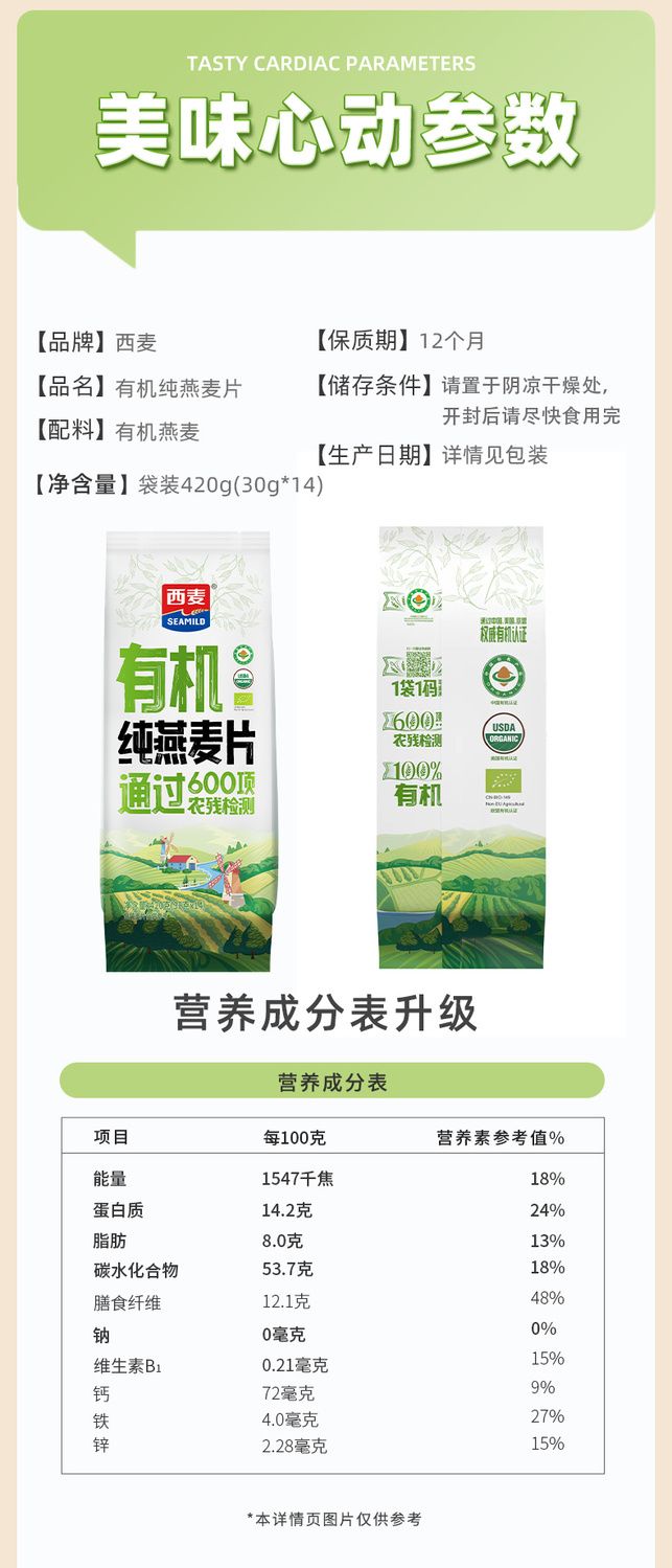 有机纯燕麦420g*1+纯燕麦片35g*8