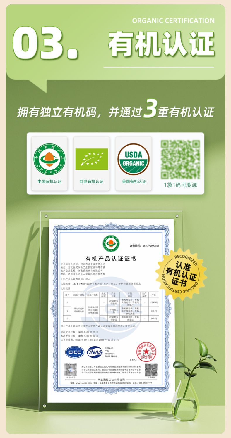 西麦有机纯燕麦片420g独立装高蛋白质高纤维生素