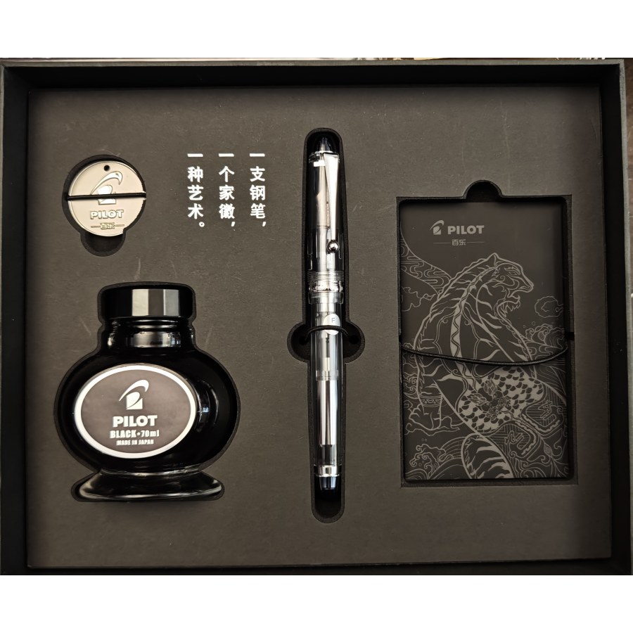 百乐I70BHZF尖透明贵客74钢笔套装(配墨水-笔盒-徽章)