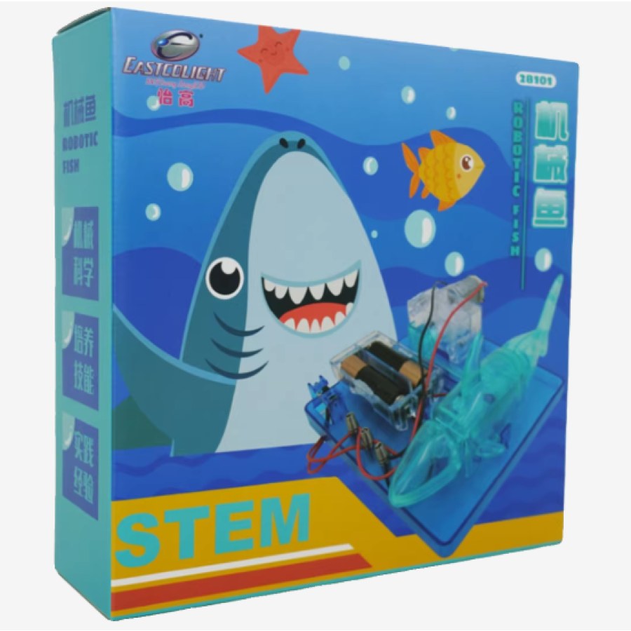 儿童STEM科普小制作机械鱼电路拼装马达变速箱组合教玩具动手能力