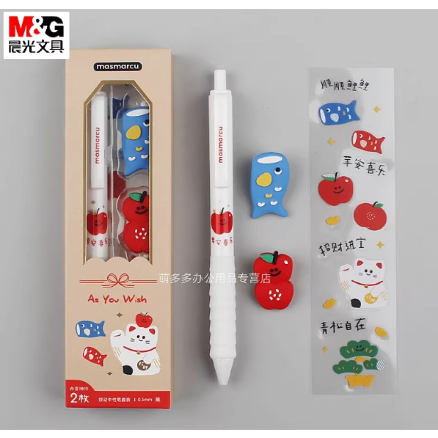 晨光甜果心愿速干按动饰件中性笔套装贴纸学生考试专用刷题写字签字笔水笔高颜值简约办公用品文具AGPJ0636黑