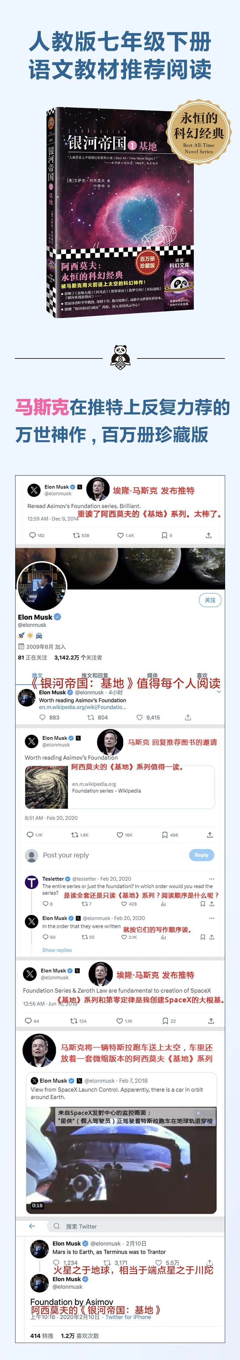 银河帝国:基地 马斯克的人生之书。被马斯克用火箭送上太空的科幻神作,百万册珍藏版 读客科幻文库