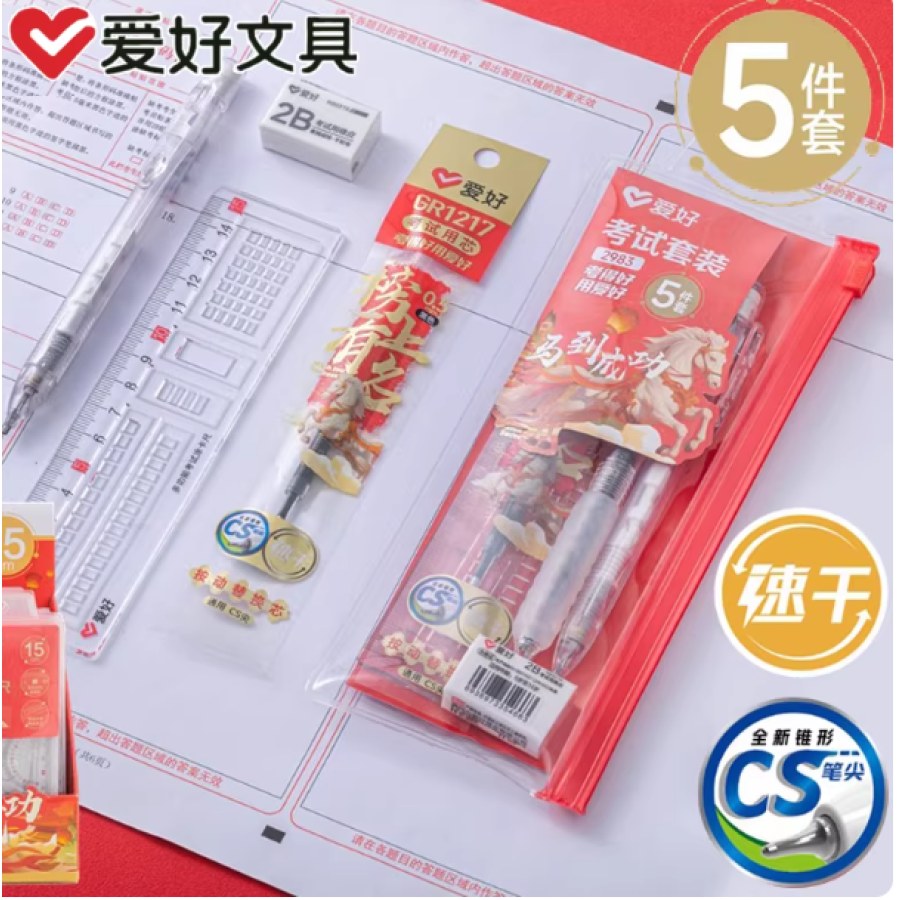 爱好2983考试套装5件套学生用品黑色中性笔CS笔头2B铅笔涂卡直尺