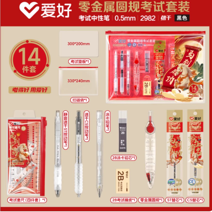 爱好文具马到成功零金属考试套装公考研专用文具套装公务员考试专用2b涂卡笔静音中性笔国考全套0金属考试