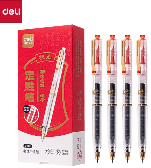 得力V118考场状元定胜笔消音速干按动考试中性笔 0.5 黑