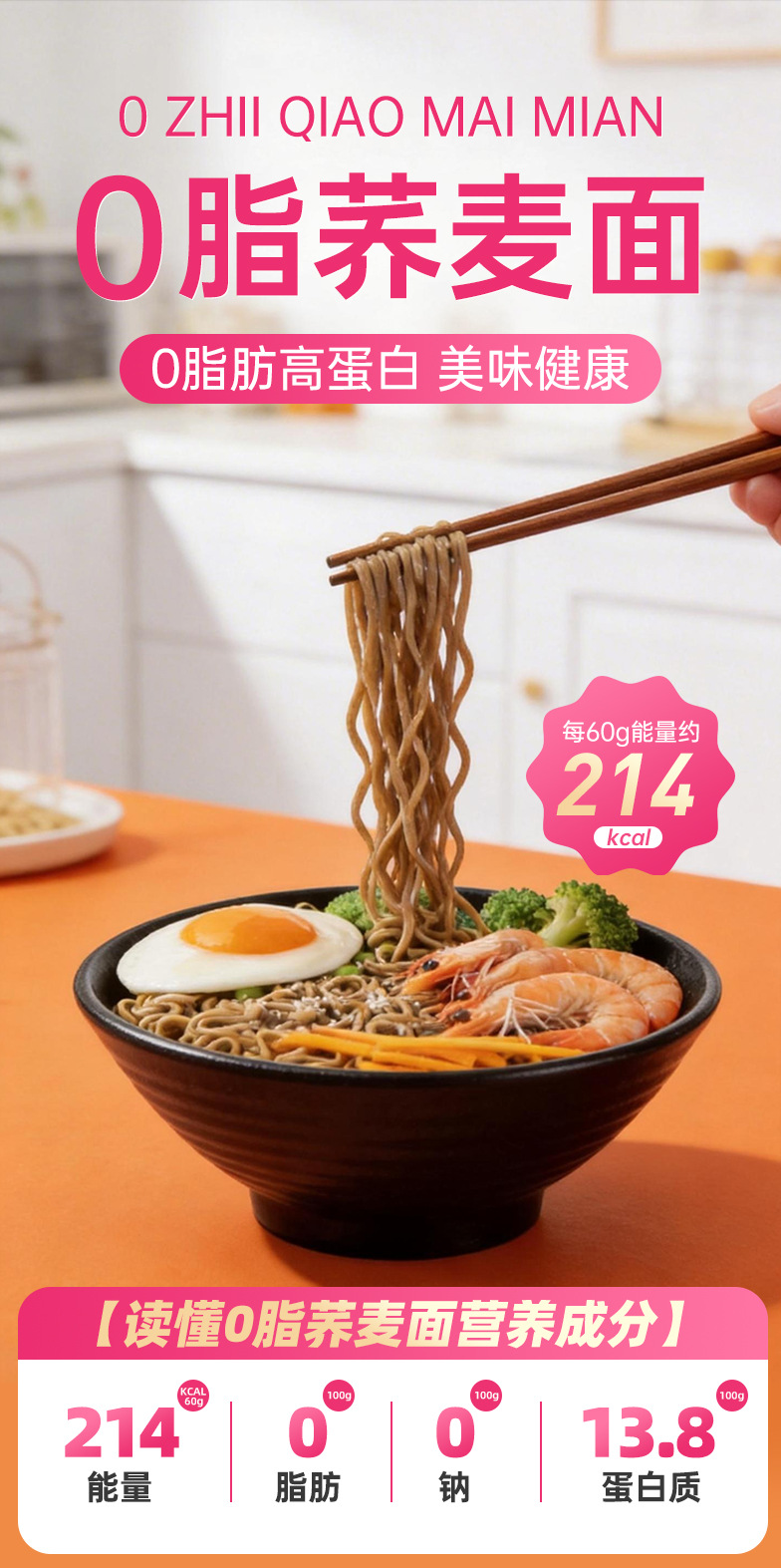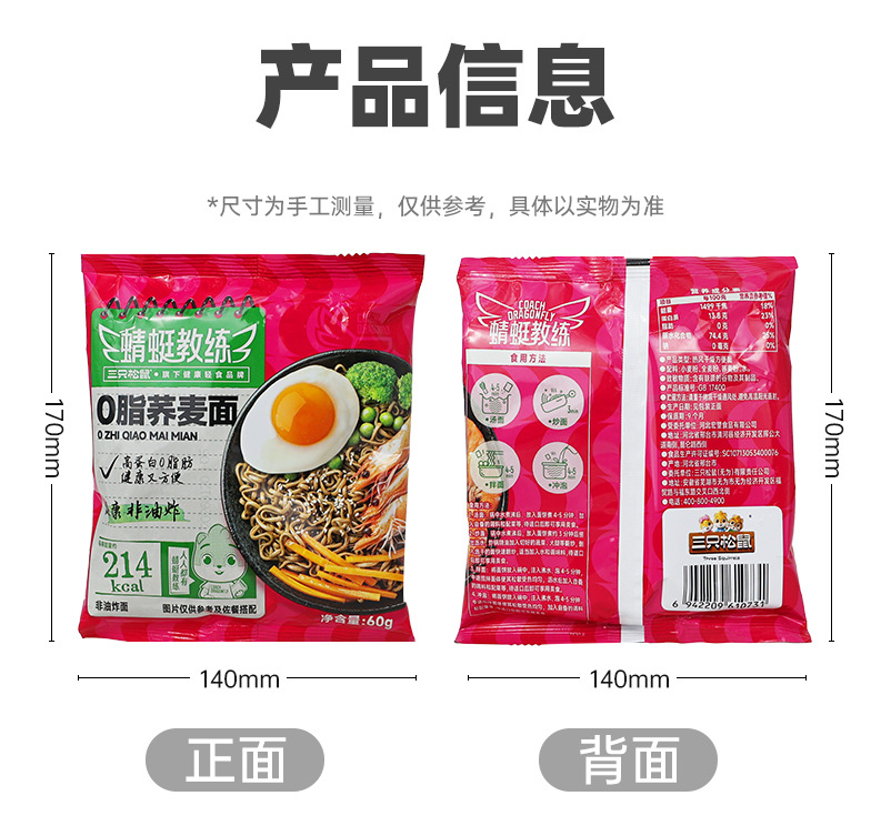 三只松鼠荞麦面60g深夜方便解馋0脂肪高蛋白