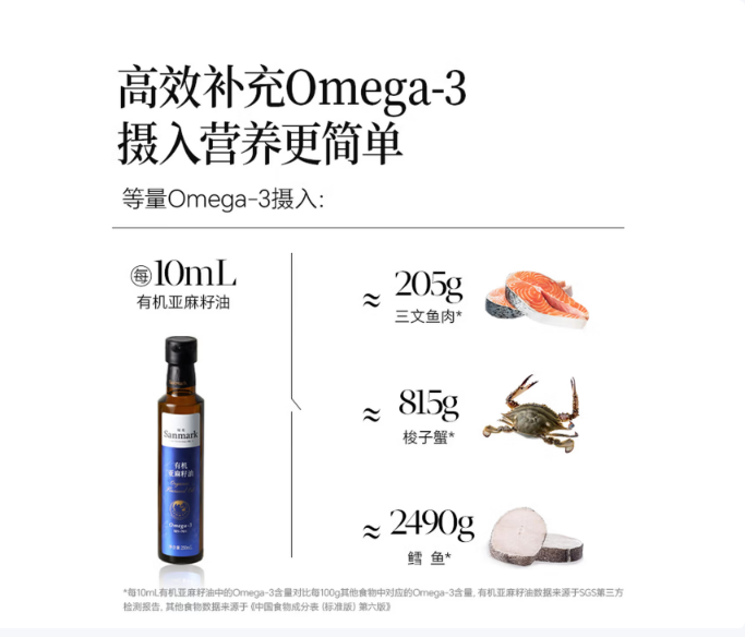 亚麻籽油Omega-3总量是深海鱼的28.5倍,补充优质脂肪酸,抗炎提升免疫力