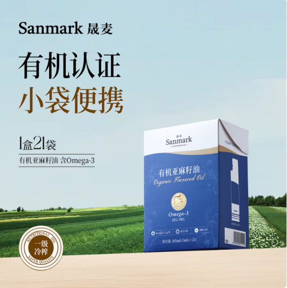 晟麦(sanmark)有机亚麻籽油5ml*21袋压榨初榨一级食用油便携可生饮轻食色拉油 有机亚麻籽小袋油5ml*21