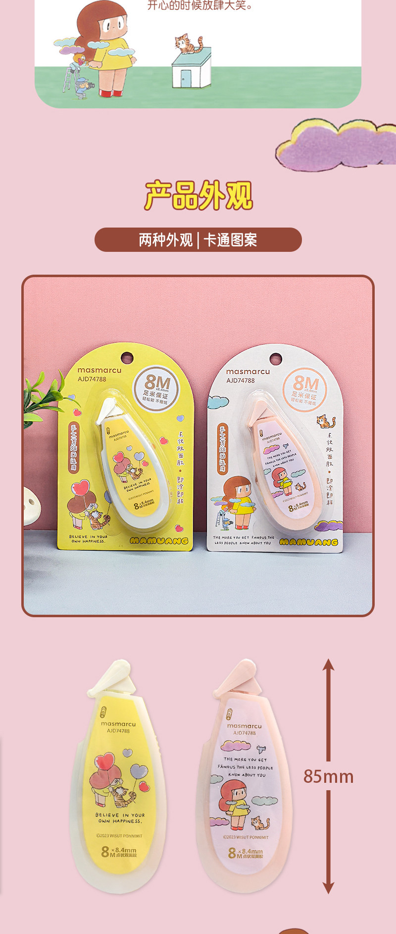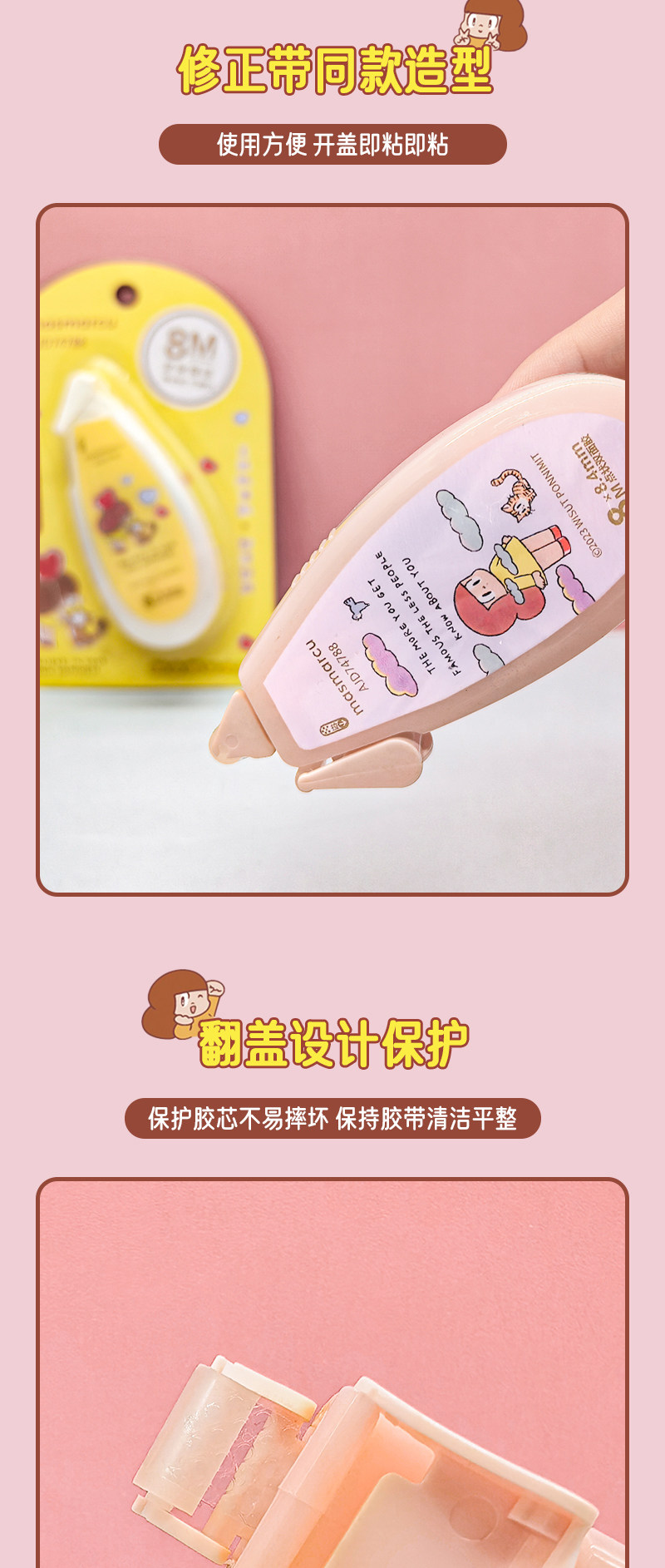 B乐普升小学初中生改正带米黄色修正带女学生用修改带少女文具用品改错带