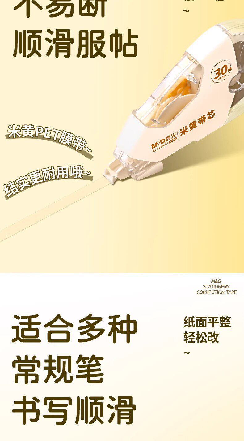 B乐普升小学初中生改正带米黄色修正带女学生用修改带少女文具用品改错带