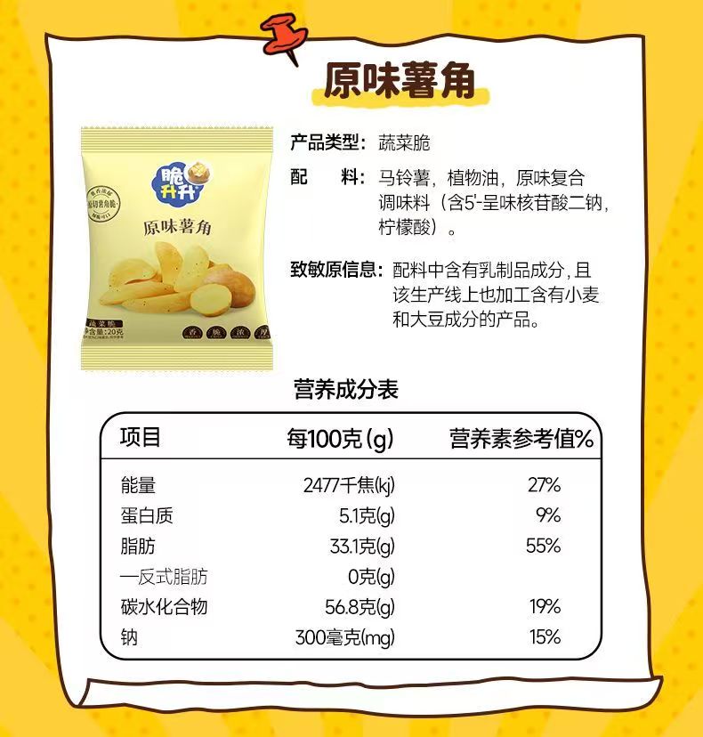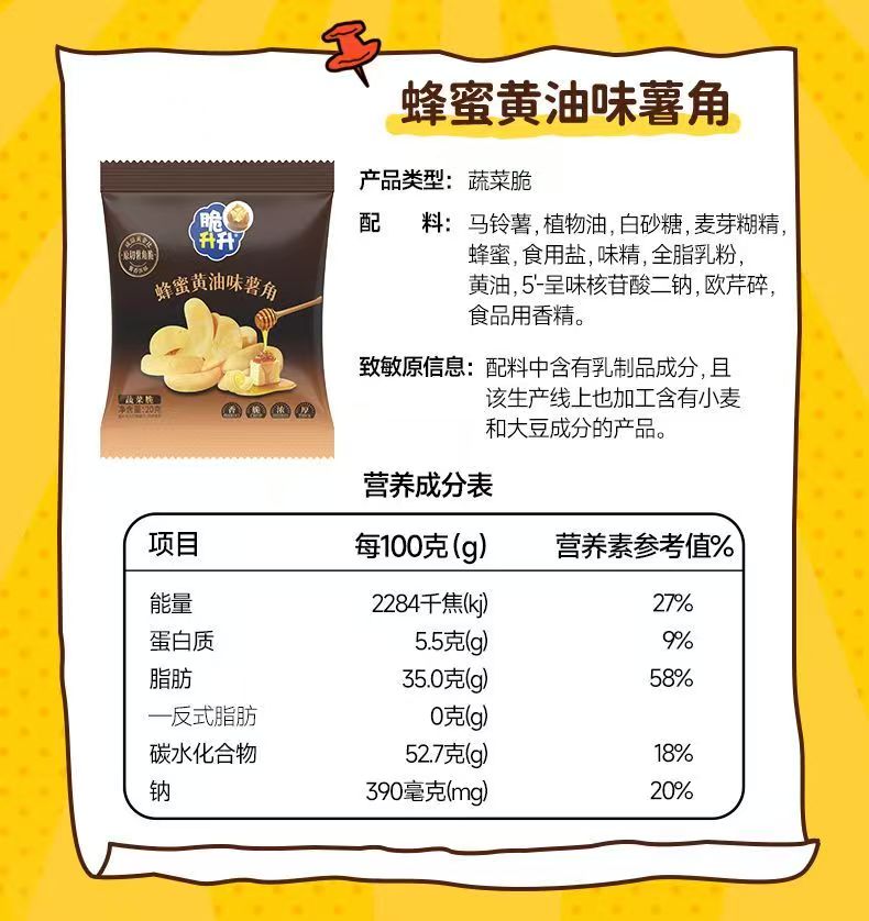 脆升升爆品薯角20g*10袋蒜香黄油蜂蜜薯香浓郁
