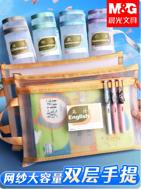 晨光双层手提网纱学科拉链袋(英语)ADM929WM
