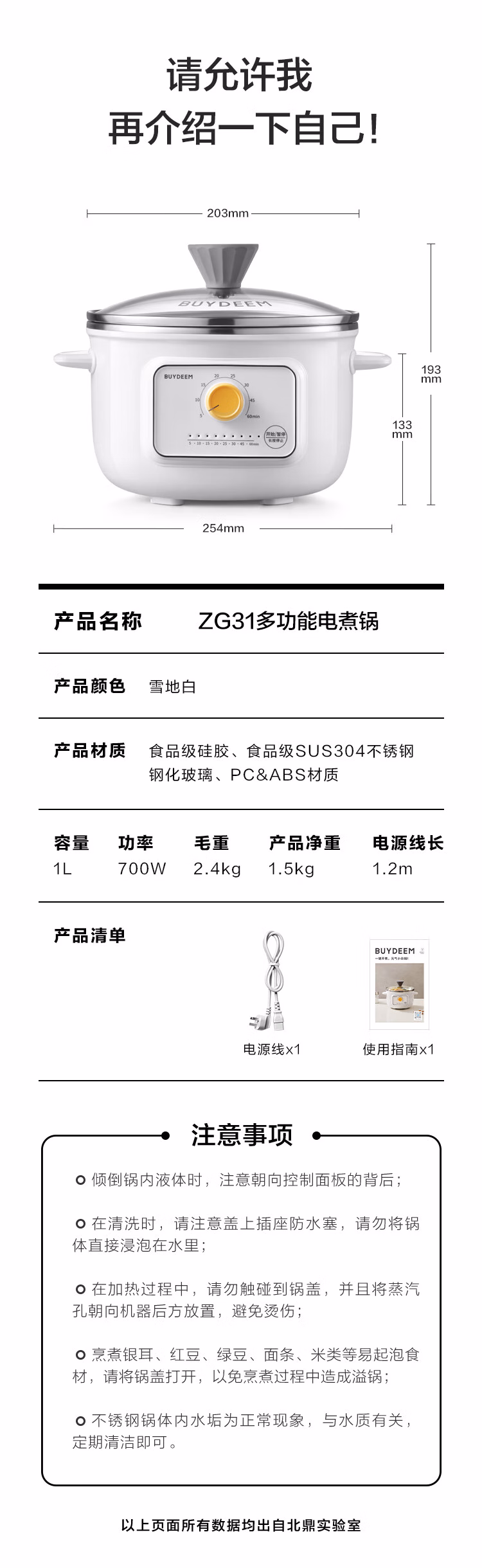 北鼎ZG31/电煮锅 雪地白